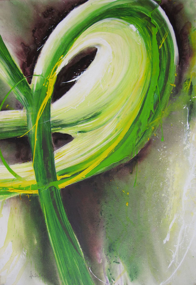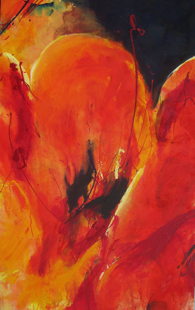 Klare, leuchtende Farben, spontan gesetzte Linien in klaren Kompositionen auf großformatigen Leinwänden bestimmen bis heute meine Arbeit.